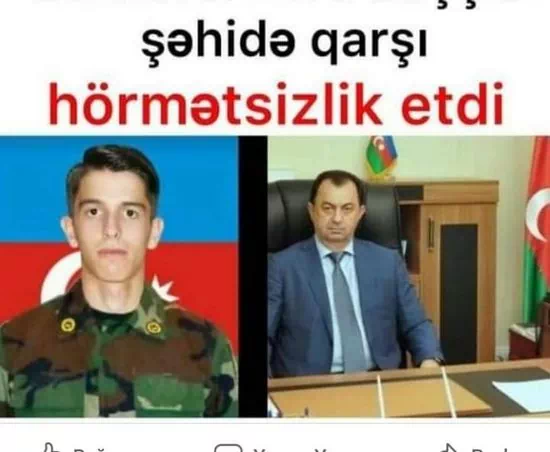 Lənkəranın İcra Başçısının şəhidə qarşı bu hörmətsizliyi kənd sakinlərini qəzəbləndirib. Bu məsələ sosial şəbəkədə geniş etiraza səbəb olub.