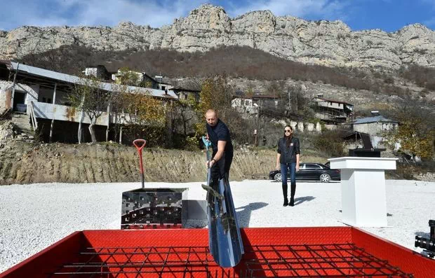 AZƏRTAC xəbər verir ki, dövlətimizin başçısı və birinci xanım əvvəlcə Füzuli rayonunda Zəfər yolunun açılışında iştirak ediblər.