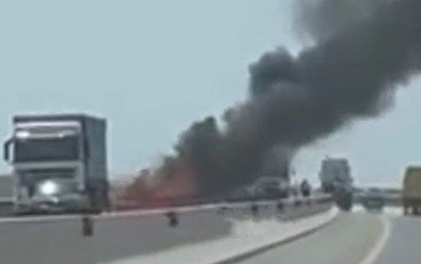 Astara magistral yolunda avtomobil yanıb!